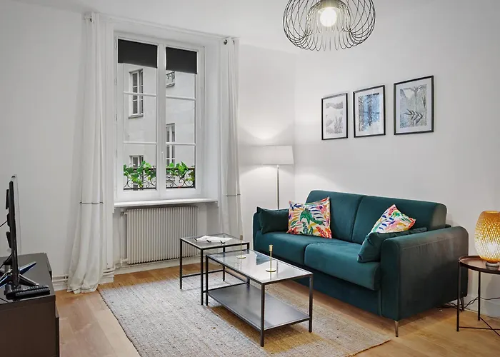 F2 Golden Lounge, Hyper Centre, Parking Apartment apartment offers a fully-fitted kitchen as well as rooms with a sofa set, tea and coffee making equipment, and a writing table. The venue is nestled in the middle of Nantes around 13 minutes' walk from Basilique Saint-Nicolas.